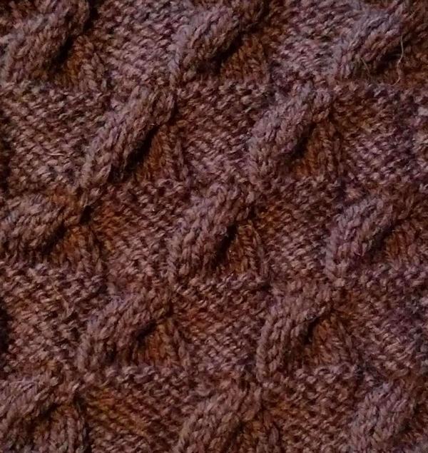 Glisser 3 m sur une aig. auxiliaire derrière le tricot, tric. 3 m à l’endroit, tric. les 3 m de l’aig. aux. à l’endroit