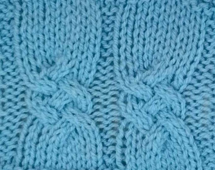 Glisser 2 m sur une aig. auxiliaire derrière le tricot, tric. 2 m à l’endroit, tric. les 2 m de l’aig. aux. à l’endroit.