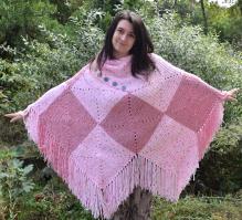 Ce poncho est réalisé avec 14 carrés + 1 rectangle pour le col.