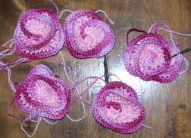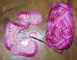 1 pelote rose 712 + 1 pelote multicolore rose 630 + 1 pelote multicolore vert 627 + 1 pelote écru 016 + 1 crochet n°2,5 + de la ouate de rembourrage (environ 50 grammes)