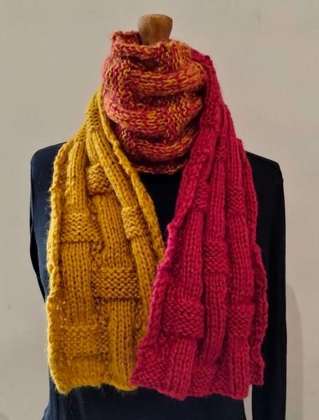 Cette écharpe est à tricoter en fil double avec 4 pelotes Comfort Line de Lammy (2 pelotes dans chacun des 2 coloris) aux aiguilles à tricoter n°8.