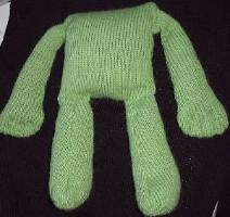 On peut utiliser un fil plus gros, la peluche sera plus grand, il faudra alors 3 pelotes de vert au lieu de 2 .