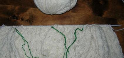 Il faut 1 paire d'aiguilles à tricoter n°4,5 et 1 ou 2 écheveaux "Irlandais" de Lammy yarns (1 écheveau pour les tailles naissance et 3 mois, 2 écheveaux pour les tailles 6 mois à 24 mois).
