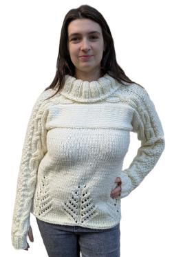 Ce modèle de pull est proposé de 2 façons : sans coutures en commençant par le col et en tricotant en circulaire ou avec coutures en tricotant en rectiligne.
