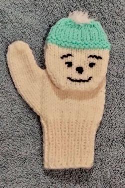 Une paire de boutons aimantés permet de fixer simplement et rapidement la partie tête lorsqu'on la replie pour transformer la moufle en mitaine. Pour ne pas voir les boutons en position moufle il suffit d'inverser les mains, les boutons seront alors en dessous et la tête brodée viendra sur le dessus. ;)